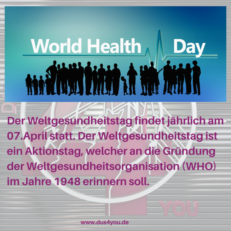 Der Weltgesundheitstag findet jährlich am 07.April statt. Der Weltgesundheitstag ist ein Aktionstag, welcher an die Gründung der Weltgesundheitsorganisation (WHO) im Jahre 1948 erinnern soll.