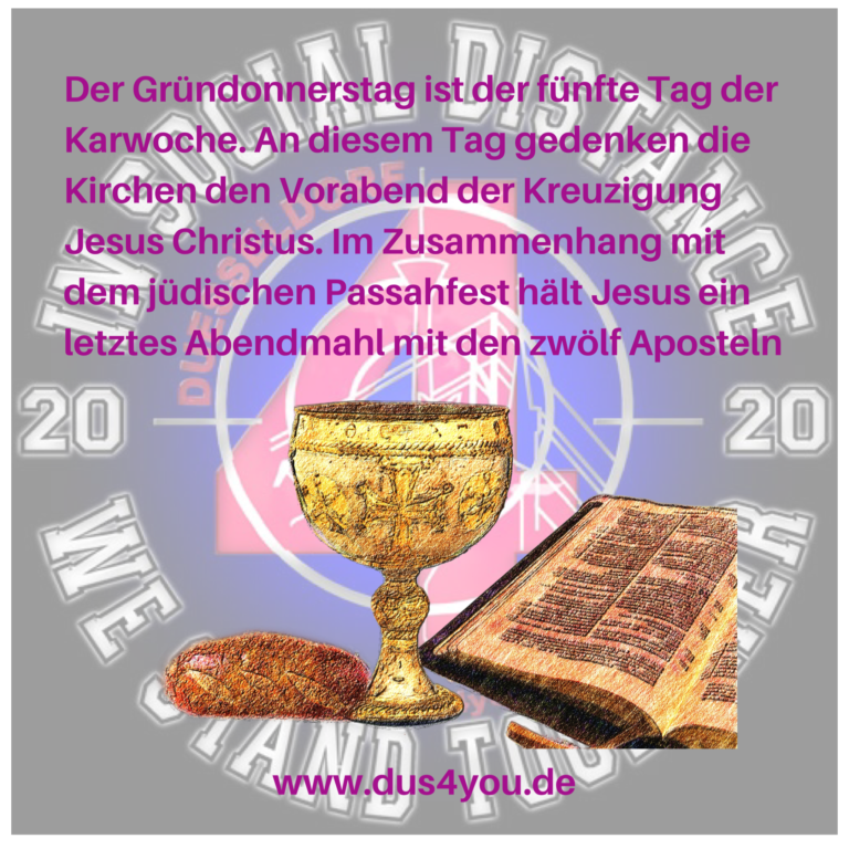 Der Gründonnerstag ist der fünfte Tag der Karwoche. An diesem Tag gedenken die Kirchen den Vorabend der Kreuzigung Jesus Christus. Im Zusammenhang mit dem jüdischen Passahfest hält Jesus ein letztes Abendmahl mit den zwölf Aposteln.